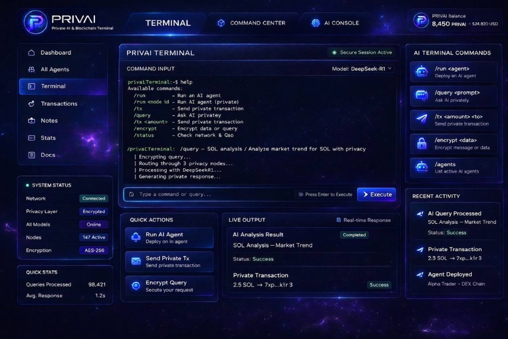 Built on Solana’s high-speed infrastructure, PrivAI delivers fast, low-cost transactions while maintaining strong cryptographic privacy guarantees.